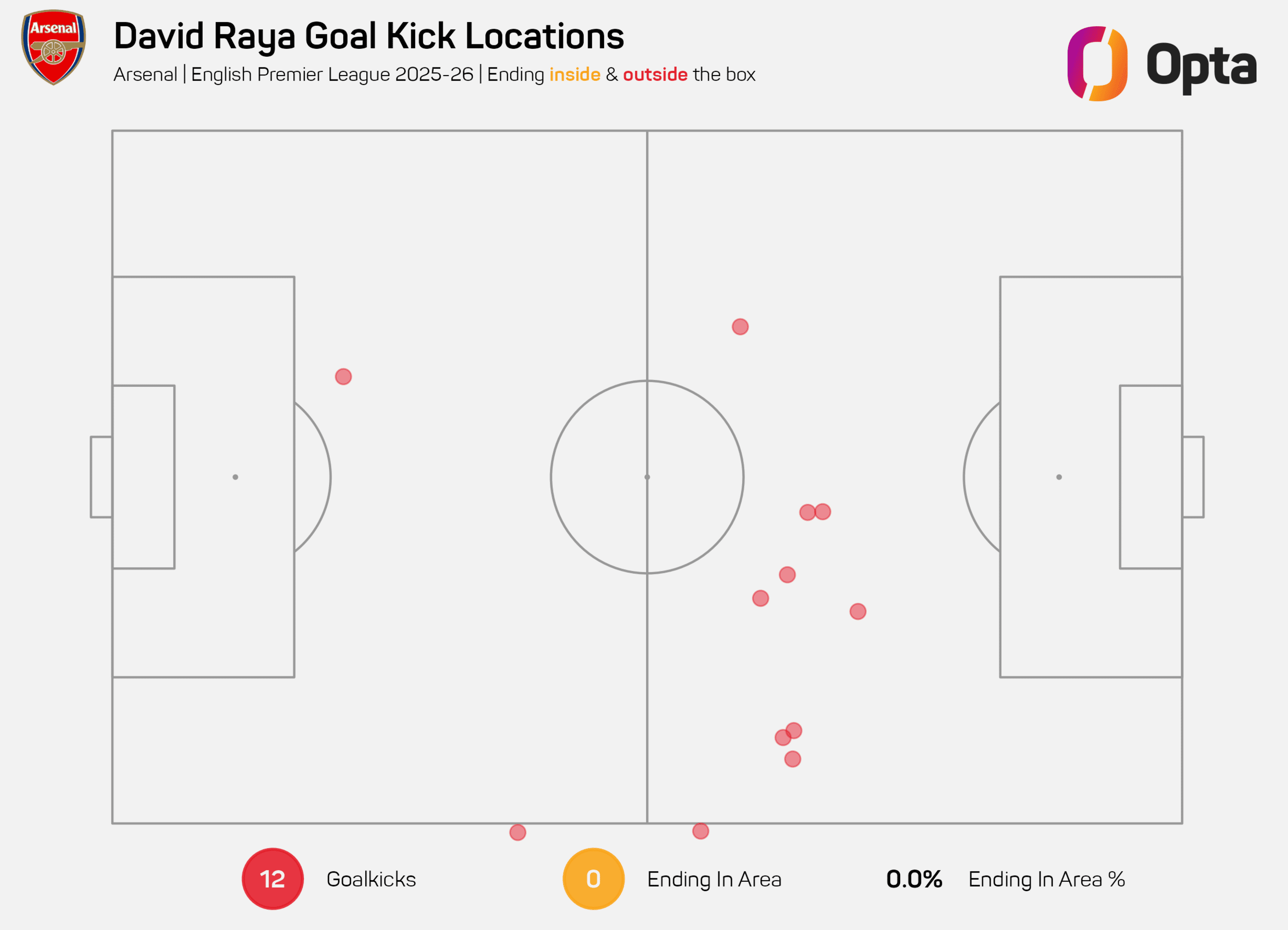Таким образом, Артета сводит к минимуму риск при построении атаки из глубины против хорошо прессингующего соперника. Это также позволяет "Арсеналу" использовать сильные стороны своих игроков: Райя отлично вводит от ворот, а Хавертц — высокий игрок, способный придержать мяч, зацепившись за него.